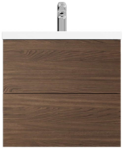 Подвесная тумба под раковину AM.PM Gem 60 2 M90FHX06022NF цвета орех, с фактурной поверхностью, с двумя выдвижными ящиками, для длительного срока службы в ванных комнатах с повышенной влажностью.