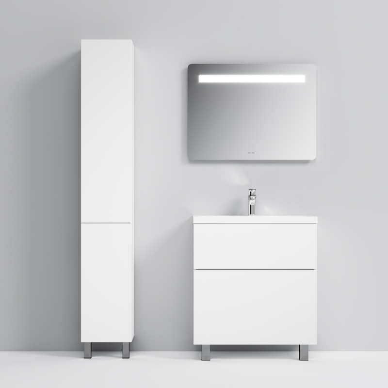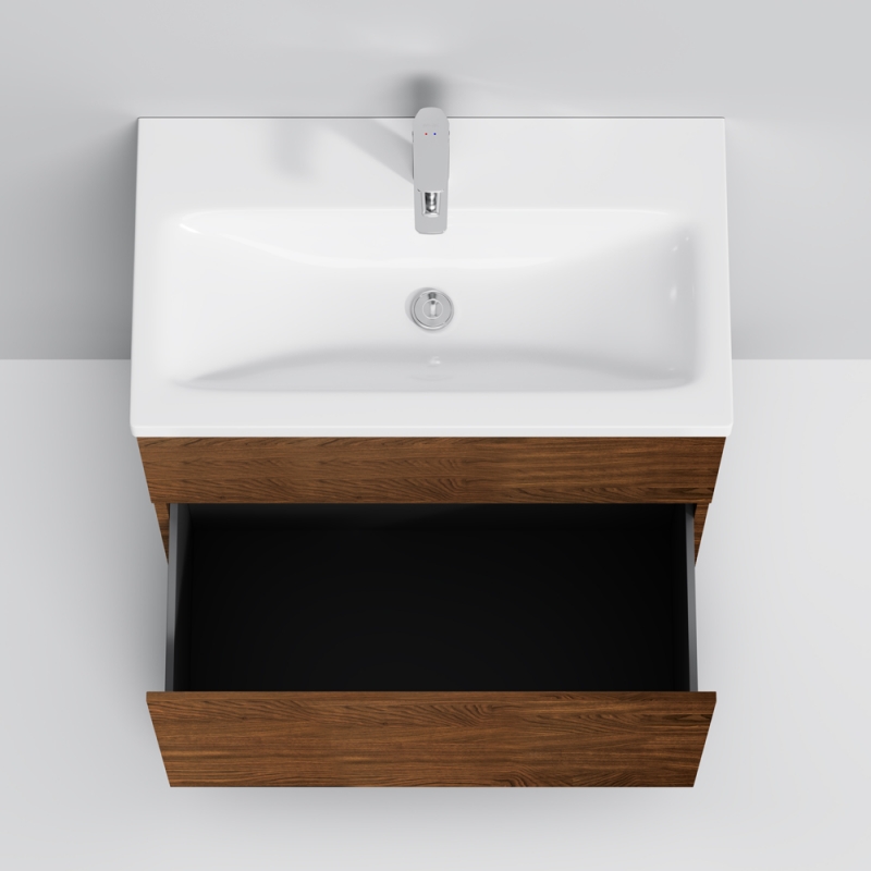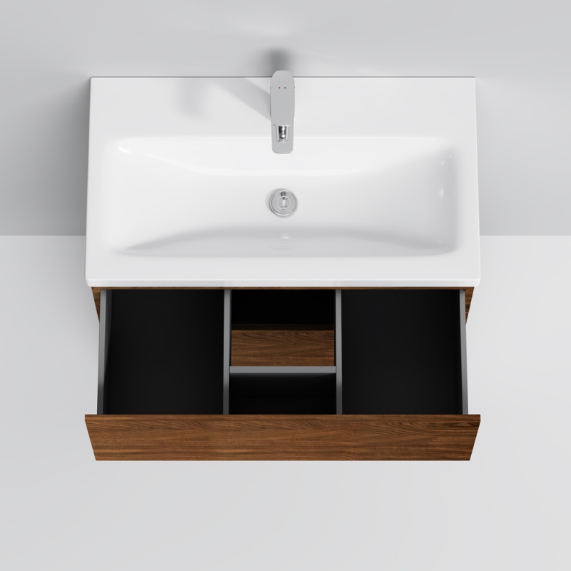Тумба под раковину AM.PM Gem 75 M90FSX07522NF32 цвета орех, с фактурной поверхностью, с двумя выдвижными ящиками, с двумя хромированными ножками, для длительного срока службы в ванных комнатах с повышенной влажностью.