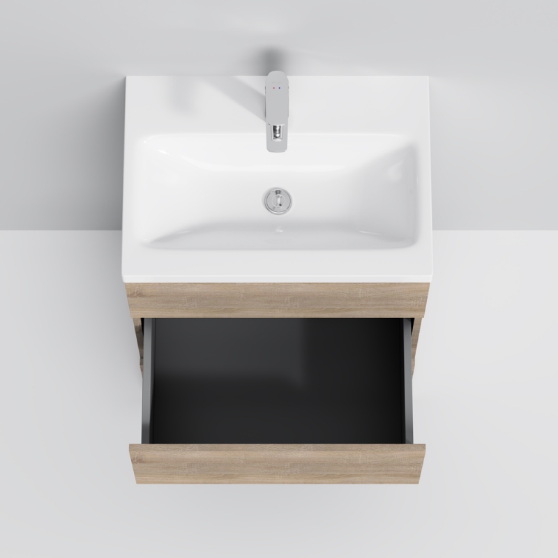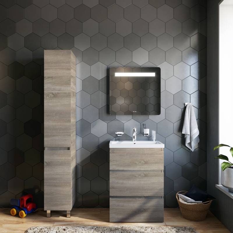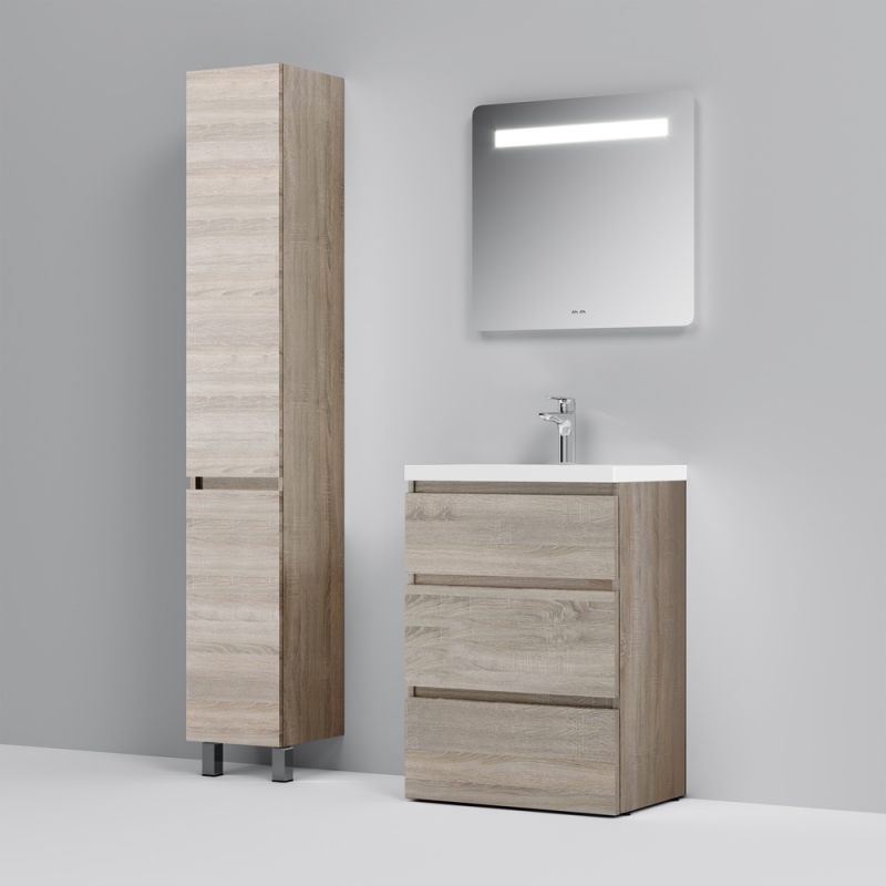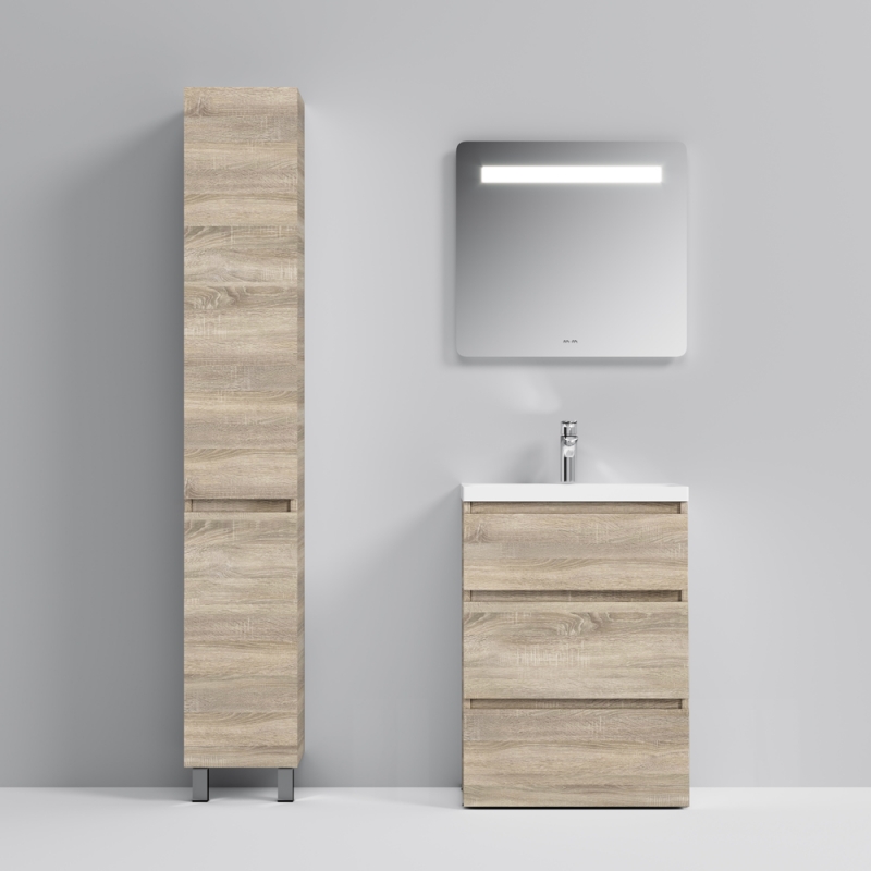 Тумба под раковину AM.PM Gem S 60 M91FSX0602OF светлый дуб, с тремя выдвижными ящиками, с двумя хромированными ножками, для длительного срока службы в ванных комнатах с повышенной влажностью.