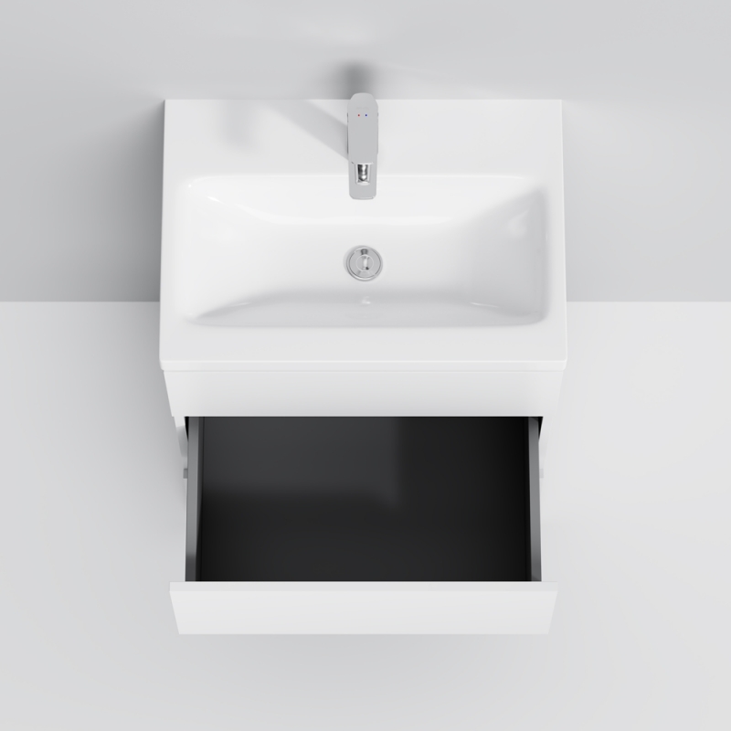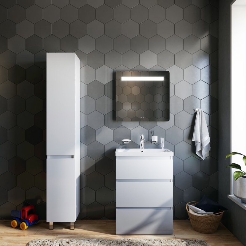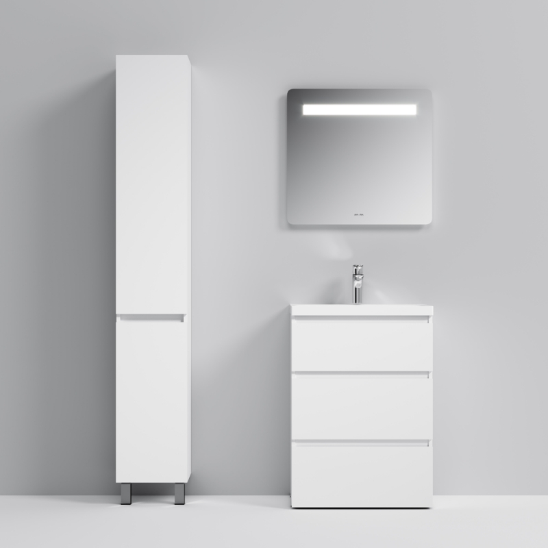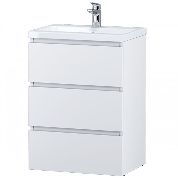 Тумба под раковину AM.PM Gem S 60 M91FSX0602WG белая, с глянцевой поверхностью, с тремя выдвижными ящиками, с двумя хромированными ножками, для длительного срока службы в ванных комнатах с повышенной влажностью.