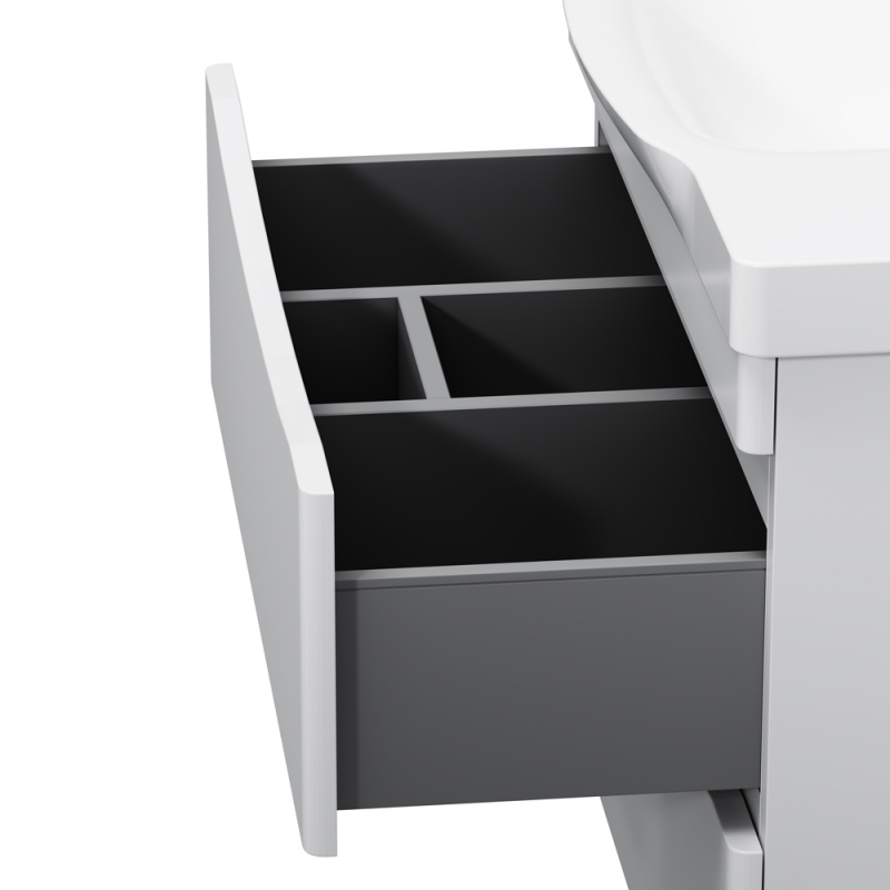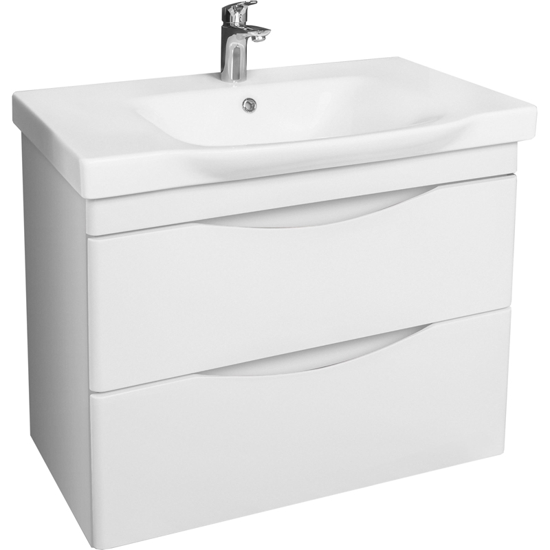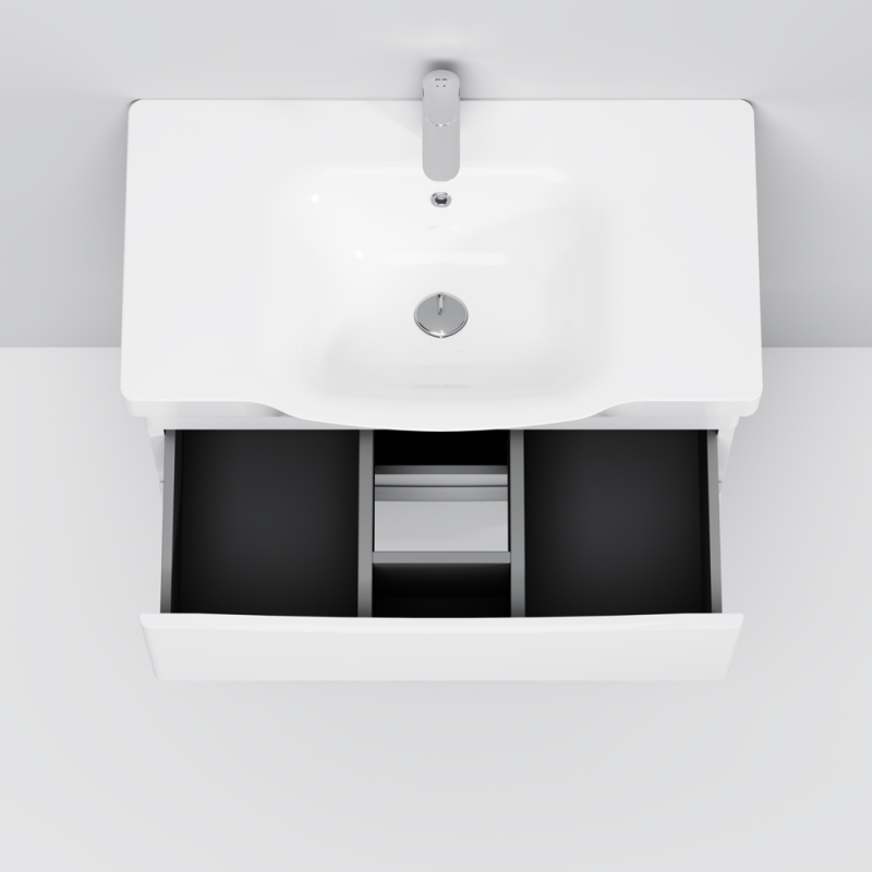 Подвесная тумба под раковину AM.PM Like 85 M80FHX0802WG с двумя выдвижными ящиками. Дизайн разработан английским агентством DanelonMeroni. Предназначена для использования в ванных комнатах с повышенной влажностью.