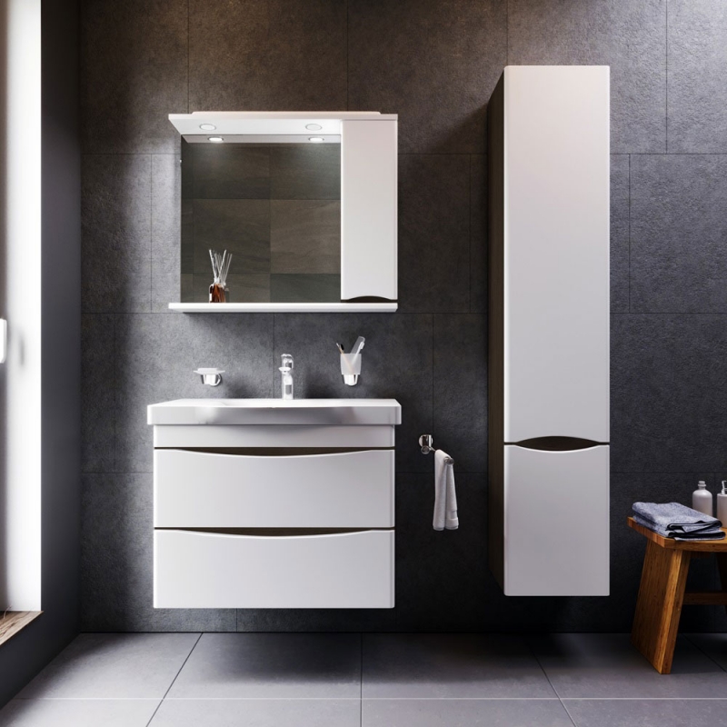 Зеркало со шкафом AM.PM Like 80 R M80MPR0801VF с подсветкой и шкафчиком справа. Дизайн разработан английским агентством DanelonMeroni. Предназначено для использования в ванных комнатах с повышенной влажностью.