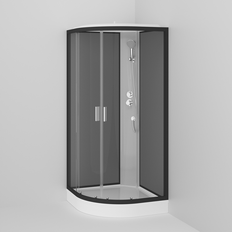 Душевая кабина AM.PM Sense New 90x90 W75C-301-090BT в форме четверти круга. Герметичность: профиль надевается на поддон.