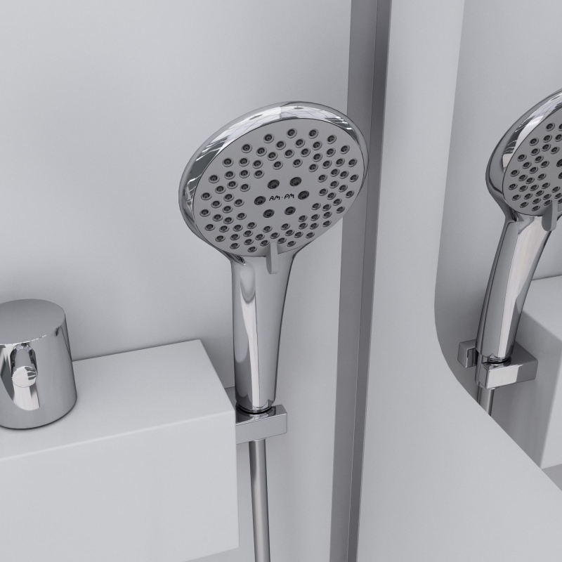 Душевая кабина AM.PM Chic 90х90 W81C-017-090MTA в форме четверти круга. Герметичность: профиль надевается на поддон.