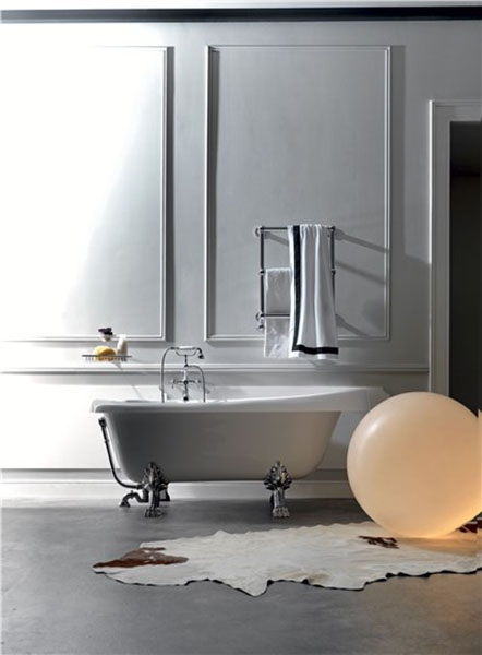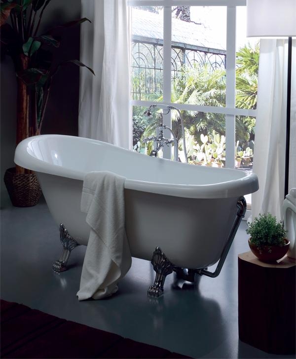 Отдельностоящая акриловая ванна Kerasan Retro 170x77 105593 bi/br на изящных львиных лапах, с внешним декоративным сливом-переливом, с удобным наклоном для поддержки спины.