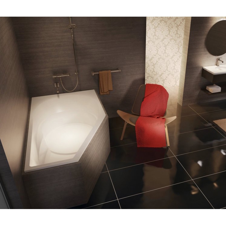 Акриловая ванна Riho Yukon 160x90 белого цвета в современном стиле отлично подойдет для просторных ванных комнат.