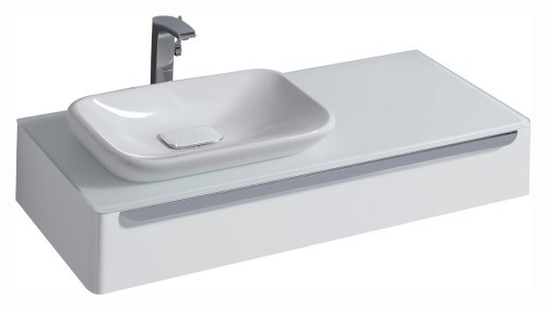 Тумба под раковину Geberit (Keramag) myDay 824260000. С отверстием слева. 1 ящик с подсветкой. Монтаж подвесной. Материал передней панели МДФ, материал корпуса ДСП, материал столешницы стекло. Ширина 115 см. Высота 20. Глубина 52 см.