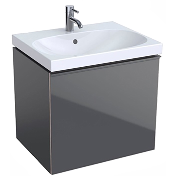 Тумба под раковину Geberit (Keramag) Acanto 500.609.JK.2 подвесная, прямоугольная в современном стиле серого цвета. Передняя часть дверцы выполнена из стекла. Имеет один внутренний выдвижной ящик. Предназначена для использования в ванных комнатах с повышенной влажностью.