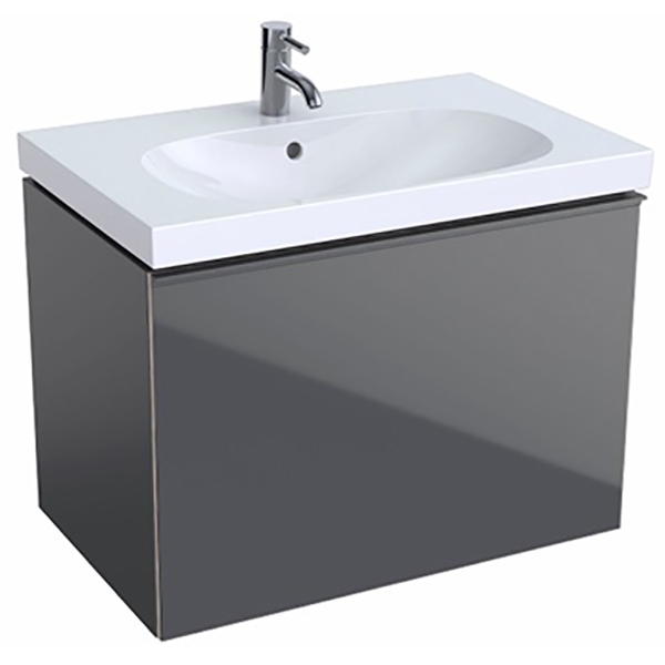 Тумба под раковину Geberit (Keramag) Acanto 500.611.JK.2 подвесная, прямоугольная в современном стиле серого цвета. Передняя часть дверцы выполнена из стекла. Имеет один внутренний выдвижной ящик. Для использования в ванных комнатах с повышенной влажностью.