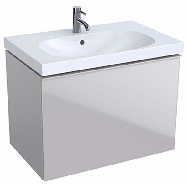 Тумба под раковину Geberit (Keramag) Acanto 500.611.JL.2 подвесная, прямоугольная в современном стиле светло-серого цвета. Передняя часть дверцы выполнена из стекла. Имеет один внутренний выдвижной ящик. Для использования в ванных комнатах с повышенной влажностью.