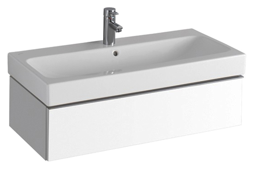 Тумба под раковину Geberit (Keramag) iCon 840290000. Монтаж подвесной. Материал передней панели и корпуса ДСП. С 2-мя ящиками, с 1 хромированной ручкой. Ширина 89 см. Высота 24 см. Глубина 47,7 см. Вес 15,6 кг.