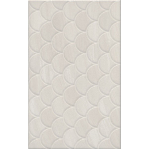 Керамическая плитка Kerama Marazzi Сияние светлый структура настенная 25х40 см под камень, с рельефным рисунком в виде черепицы или рыбьей чешуи. Структурная поверхность, благодаря игре светотени, сделала цвет кафеля глубже, наполнила его новыми нюансами. В упаковке 11 штук общей площадью 1,1 м2. Вес упаковки составляет 15,833 кг.