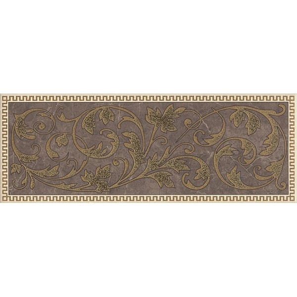 Керамический декор Kerama Marazzi Орсэ ADA36315106 15х40 см филенка украшена золотым меандром, а центральная часть панели классическим орнаментом из листьев аканта, расскрашенных золотой гранилью. В упаковке 10 штук. Вес упаковки составляет 7,7 кг.